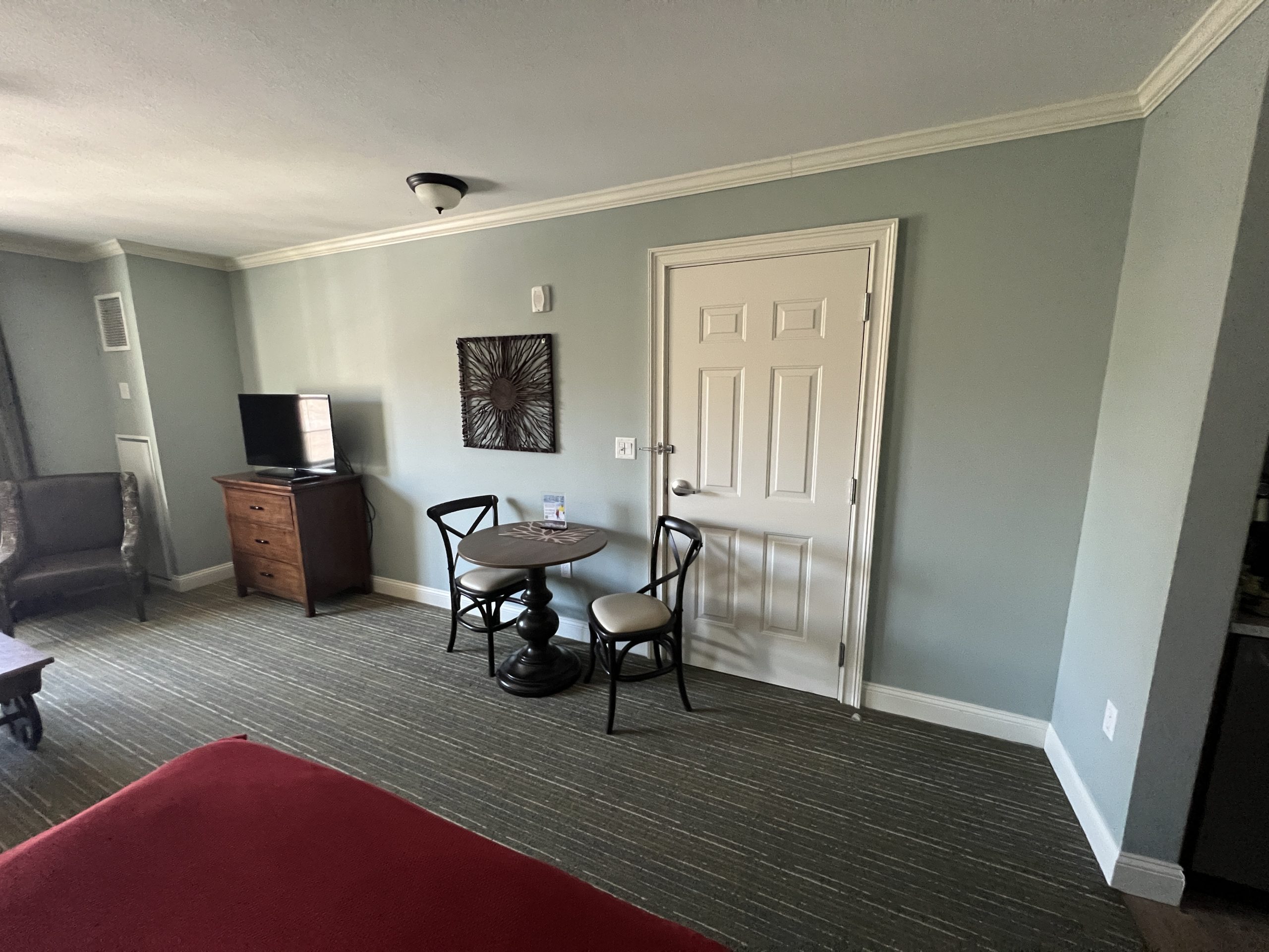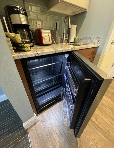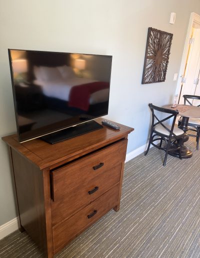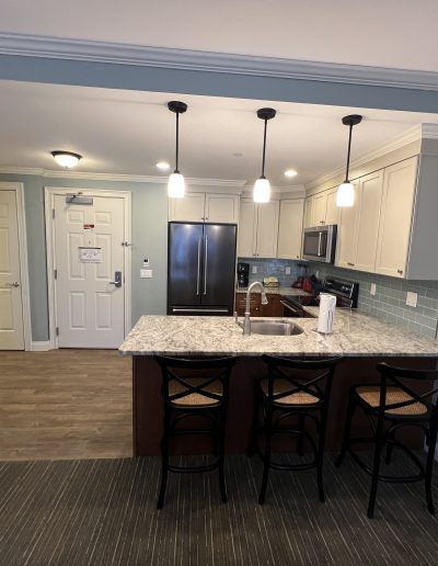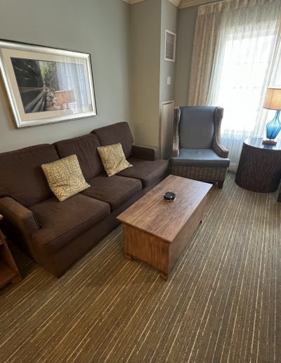 • Connecting studio suite with bedroom, living room, full bathroom, and kitchenette with mini-fridge, sink, microwave, toaster, and coffee maker