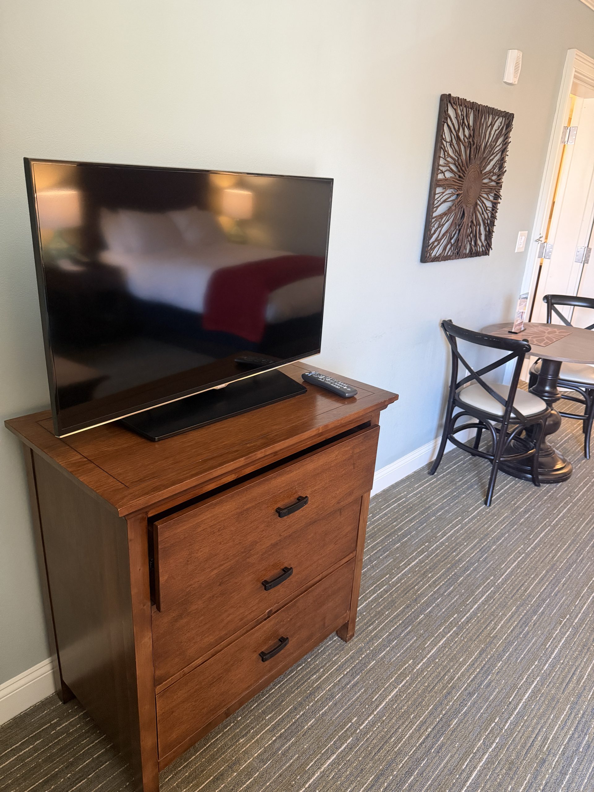 • Spacious living room with television, gas fireplace, and ample seating