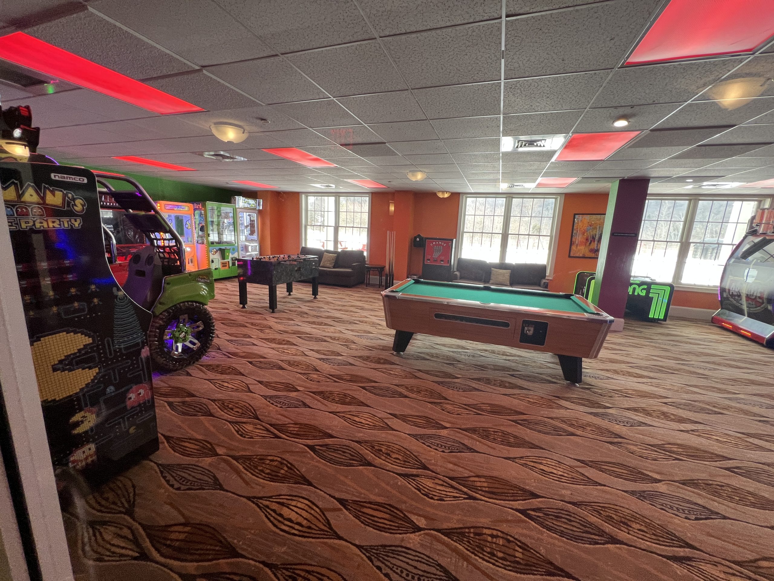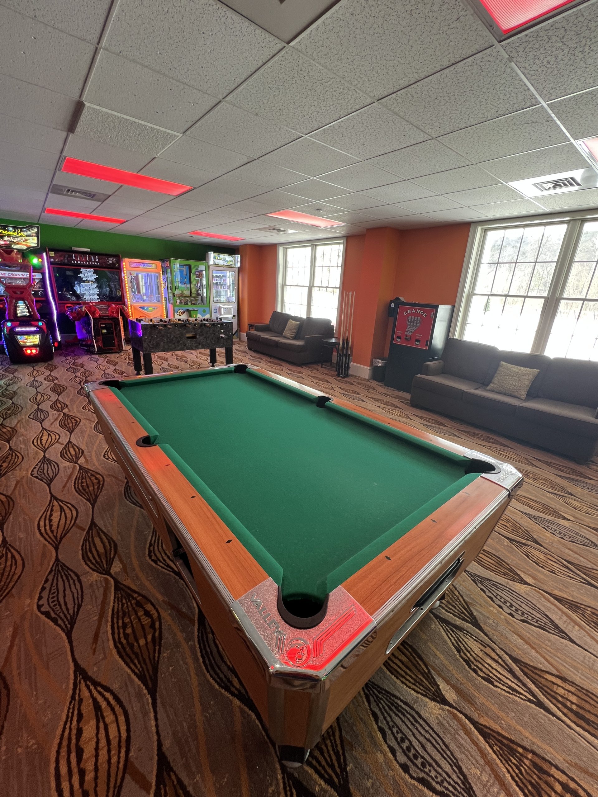 • Arcade with foosball, pool table, and other games